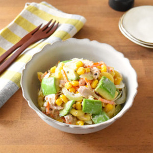ボリューム満点!マカロニ入りアボカドツナサラダ