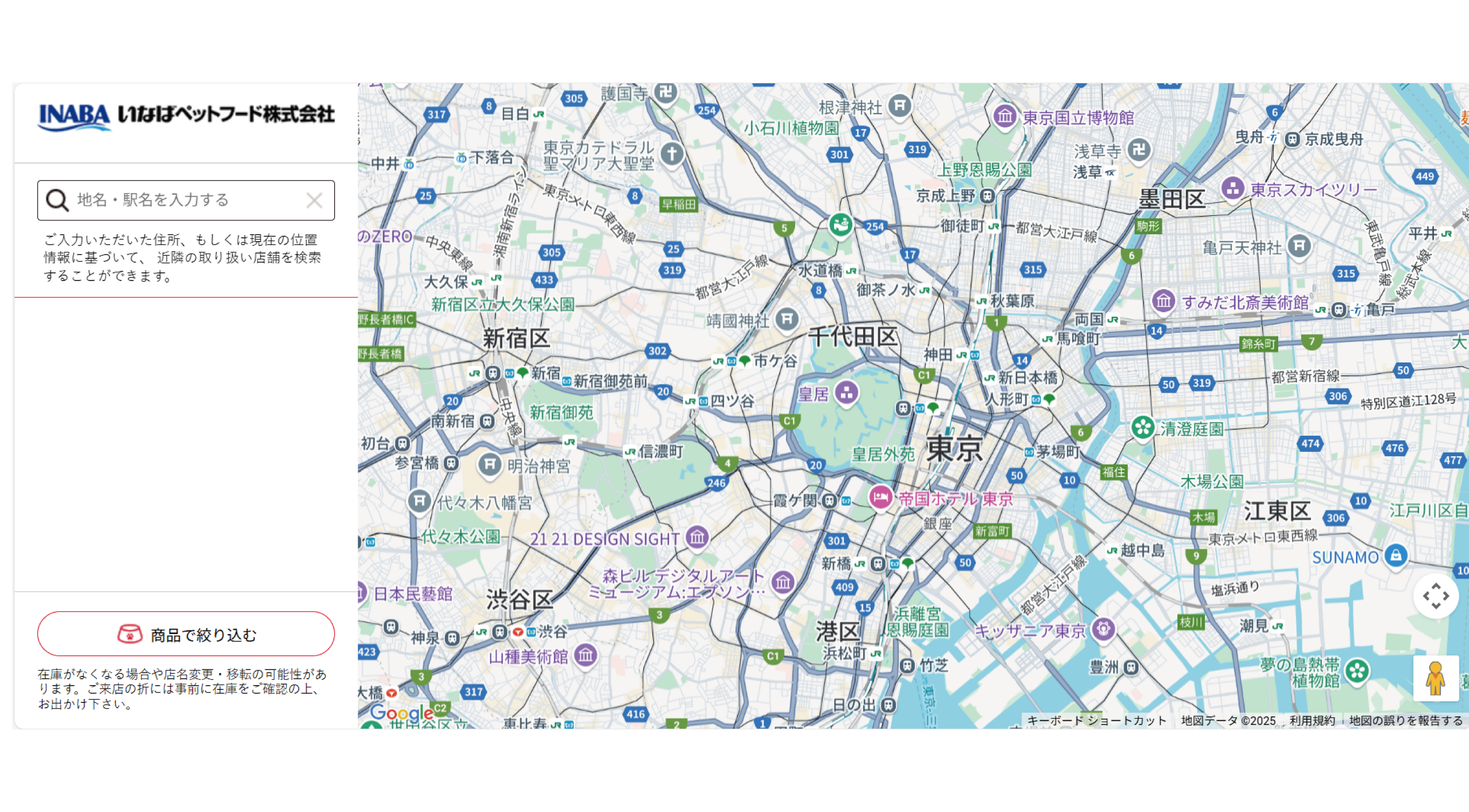 ※検索地図には、いなばペットフード株式会社の公式サイトに掲載されているブランドサイトからアクセスしていただくことが可能です。