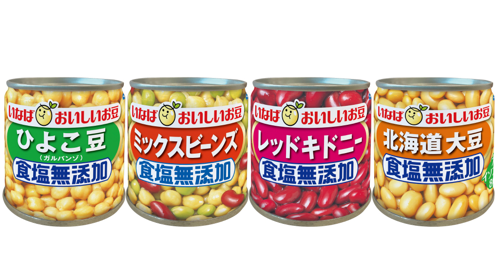 いなば食品株式会社では、食塩無添加の豆缶詰シリーズ「ミックスビーンズ」「ひよこ豆」「レッドキドニー」「北海道大豆」の4種をラインナップしています。食物繊維たっぷりのヘルシーな農産缶で、豆本来の甘みが引き立ちます。そのままでもお料理に添えても美味しいホクホクのお豆を、この機会にぜひお試しください。