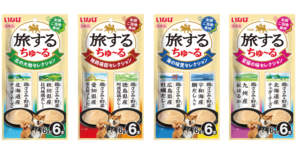 いなばペットフード株式会社(いなば食品グループ)は、わんちゃん向けのおやつ「旅するちゅ~る」を新発売いたしました。猫ちゃん用で人気のシリーズで、こだわりの全国ご当地素材とともに、わんちゃんとの旅行気分をお楽しみいただけます。