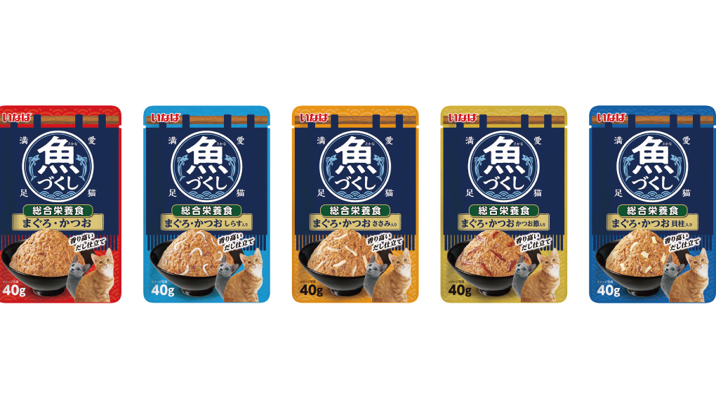 いなばペットフード株式会社は、ご好評の猫ちゃん用フード「魚づくし」の総合栄養食タイプを新発売いたしました。まぐろとかつおの細かめフレークに、猫ちゃんが喜ぶ素材を追加。だし仕立ての芳醇な風味はそのままに、愛猫の健康に欠かせない栄養素をしっかり摂取していただけます。