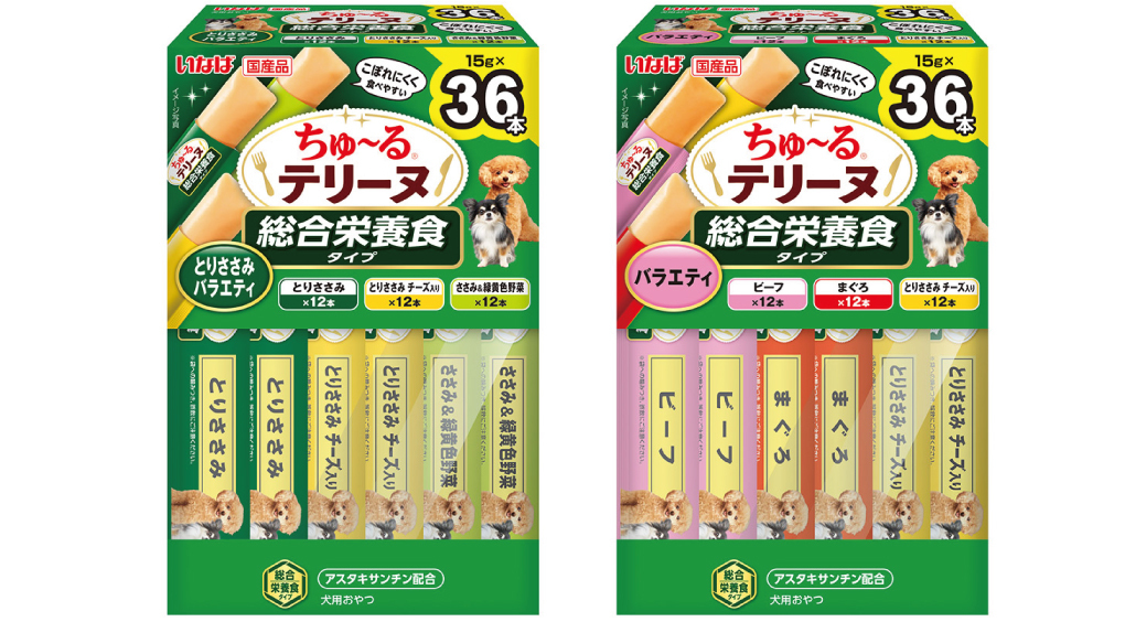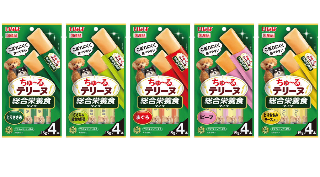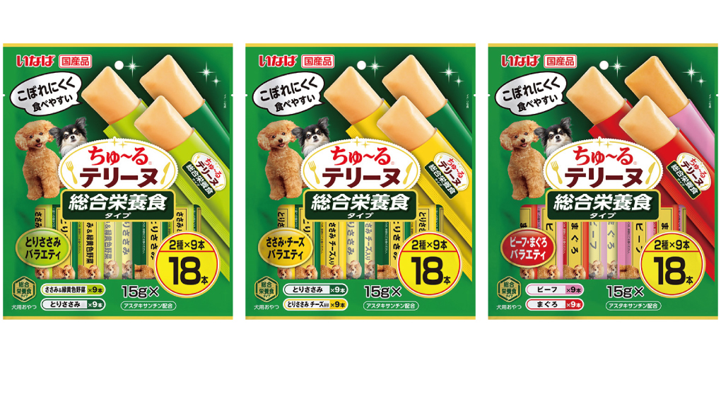 いなばペットフード株式会社(いなば食品グループ)は、わんちゃん用おやつ「ちゅ~るテリーヌ」の総合栄養食タイプを新発売いたしました。本製品は、愛犬が喜ぶ素材の風味と、お口の中でほろっと崩れる食べやすさはそのままに、毎日の健康維持に必要な栄養バランスを整えた新商品です。