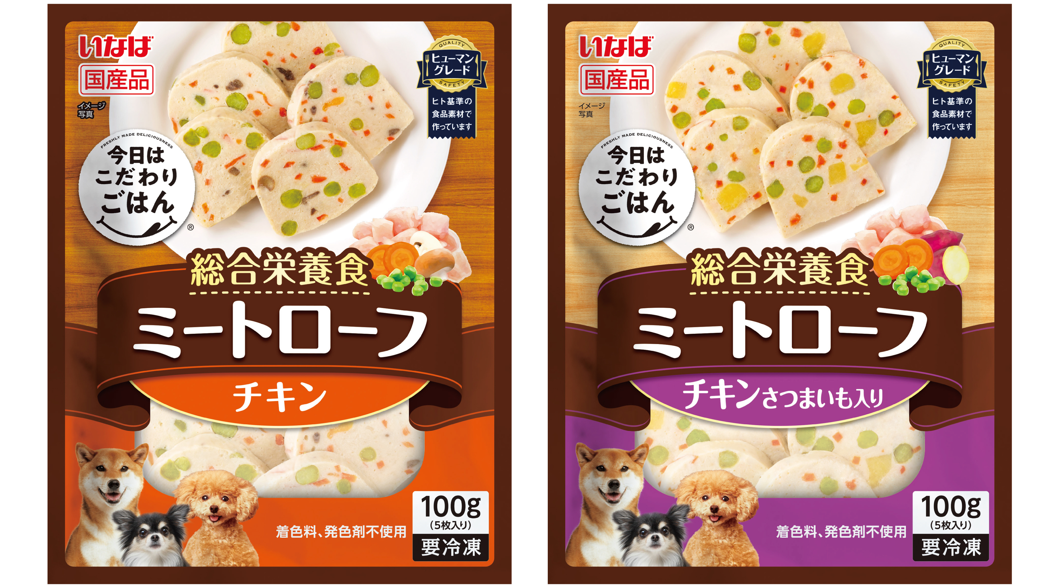 いなばペットフード株式会社(いなば食品グループ)は、わんちゃんの総合栄養食「今日はこだわりごはん ミートローフ」を新発売いたしました。ヒト基準の安全・安心な食品素材で作ったこだわりの冷凍フード。国産鶏肉をペーストした味と香り、野菜の色合いを楽しめる特別なごはんです。
