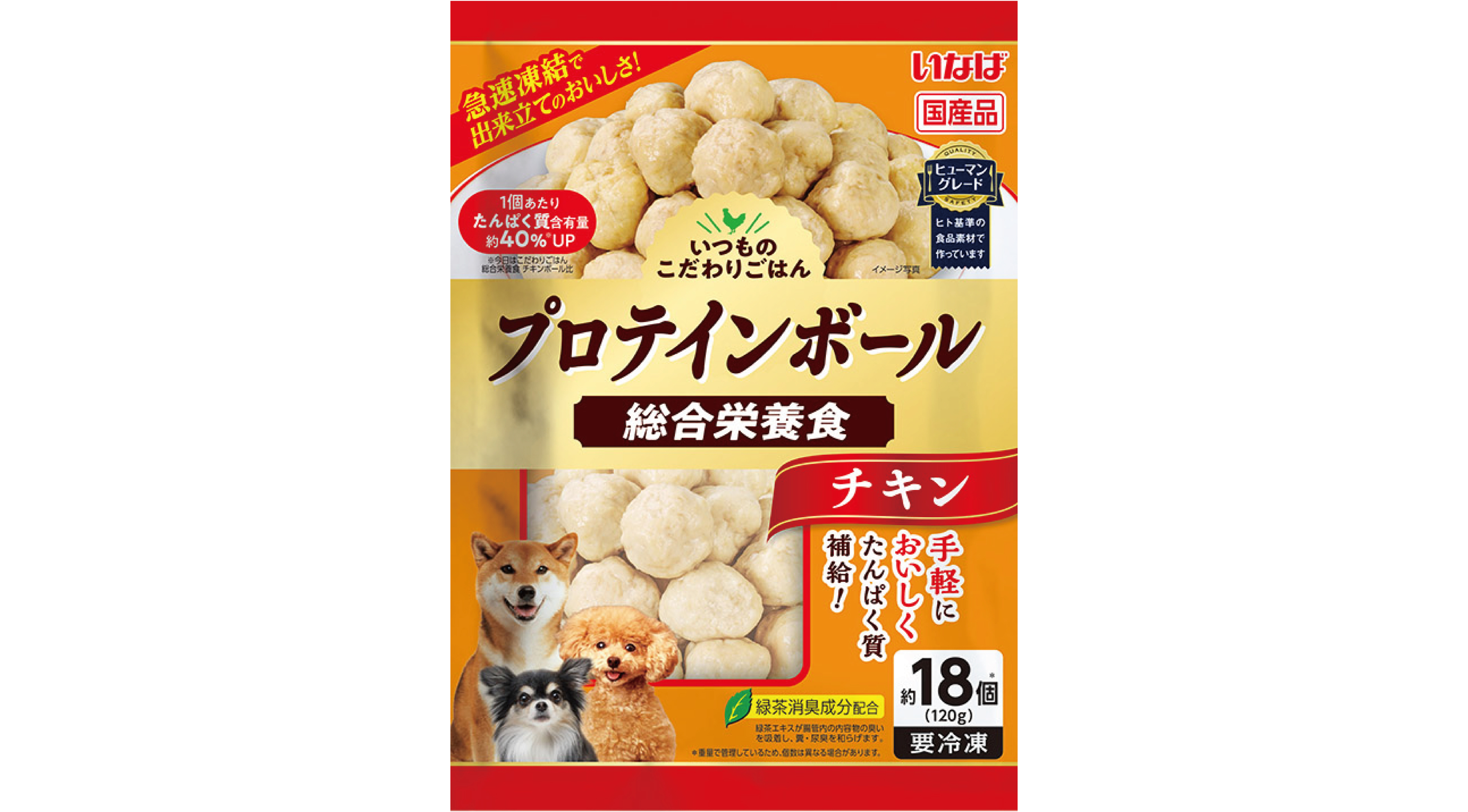 いなばペットフード株式会社(いなば食品グループ)は、わんちゃん向けの冷凍フード「いつものこだわりごはん プロテインボール」を新発売いたしました。ヒューマングレードの国産素材を使用し、急速凍結で出来立ての美味しさをキープした総合栄養食です。毎日の食事でのたんぱく質補給にぜひご活用ください。
