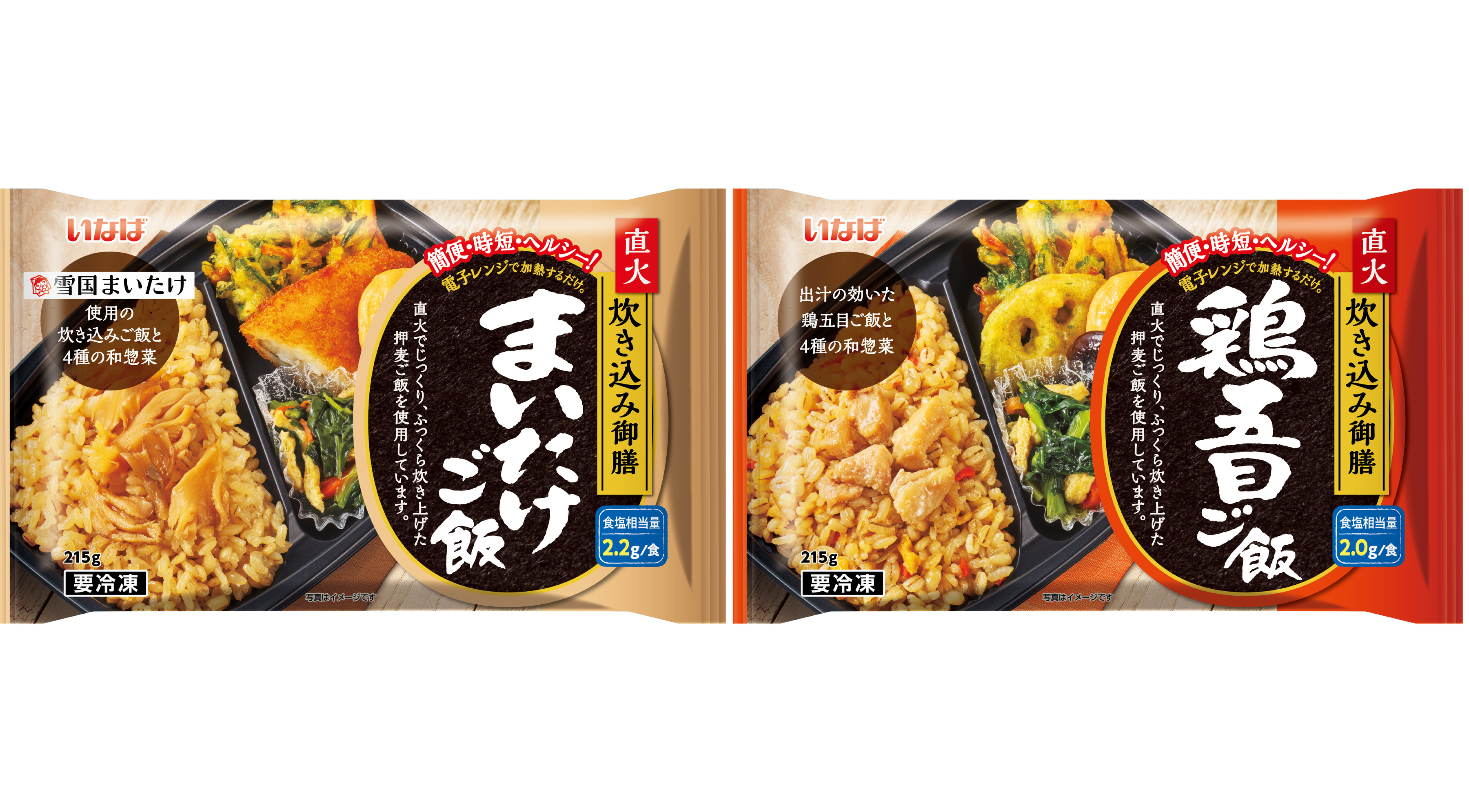 いなば食品株式会社は、冷凍お弁当「直火炊き込み御膳」シリーズとして「まいたけご飯」「鶏五目ご飯」を新発売いたしました。本シリーズは、直火釜でじっくりと炊き上げた「ふっくらご飯」に、プチッとした食感が楽しい「押麦」をブレンド。電子レンジで温めるだけで、炊きたてのような味わいをお楽しみいただけます。
